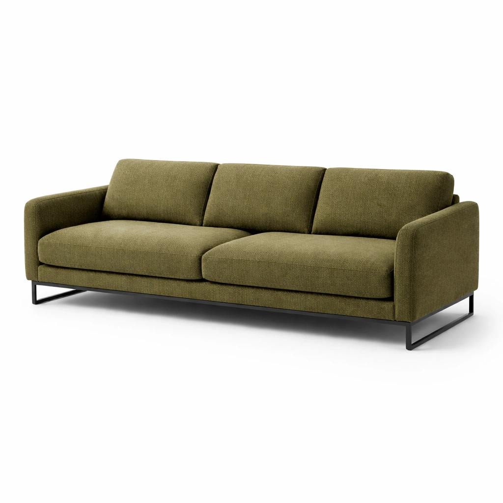 Sofá con tapicería de poliéster verde y estructura de metal